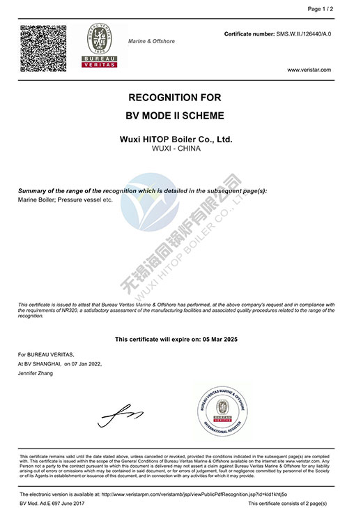 本站訊(特約記者:朱煥昌報道)2022年1月8日,無錫海同鍋爐有限公司質(zhì)量保證中心接到“必維國際檢驗集團(BV)”函件——公司根據(jù)“必維國際檢驗集團(BV)”要求建立的各項質(zhì)量保證體系和工廠環(huán)境及制造工藝水平等,通過“必維國際檢驗集團(BV)”專家評審,各項“PDCA”指標符合“必維國際檢驗集團(BV)”要求。順利獲得“必維國際檢驗集團(BV)”認可證書。